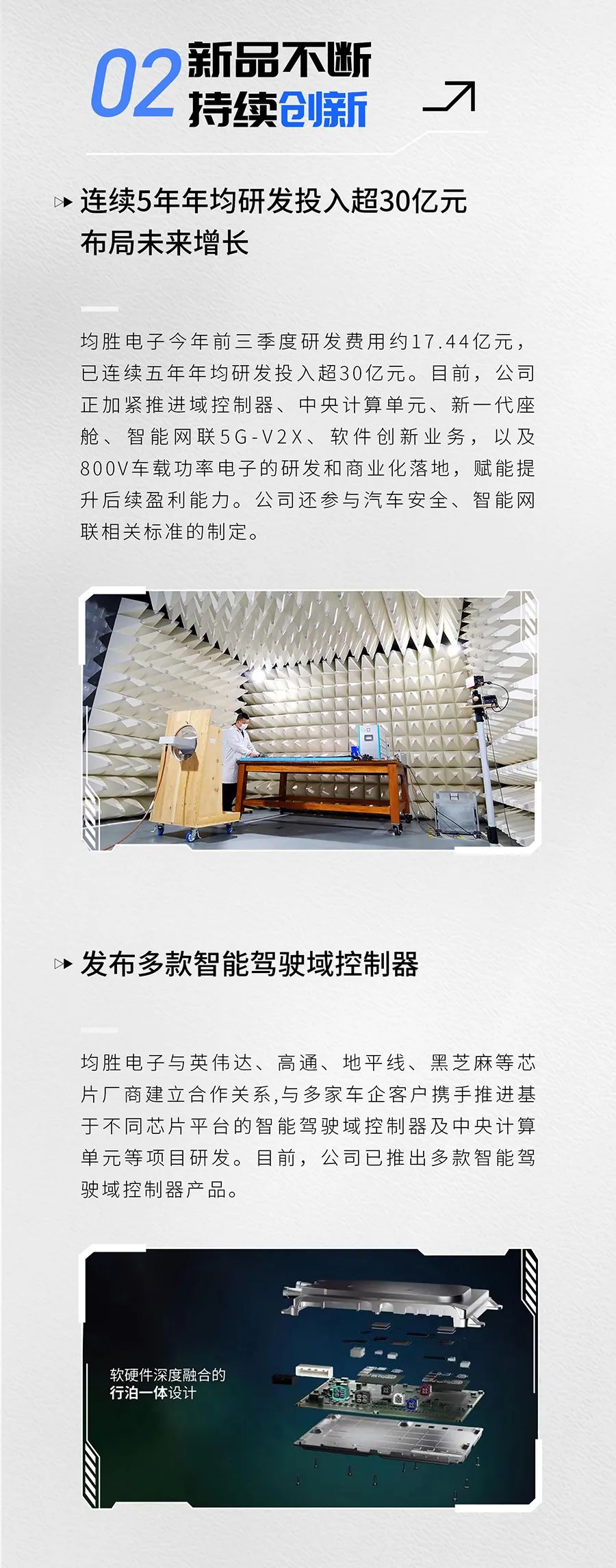 均胜电子是一家在电子领域具有广泛影响力的企业,凭借卓越的技术实力和创新精神,均胜电子多年来赢得了业界的广泛认可,公司拥有先进的生产线和研发设备,以及一支高素质的团队,这使得公司在业界始终保持领先地位,不断推出创新产品。